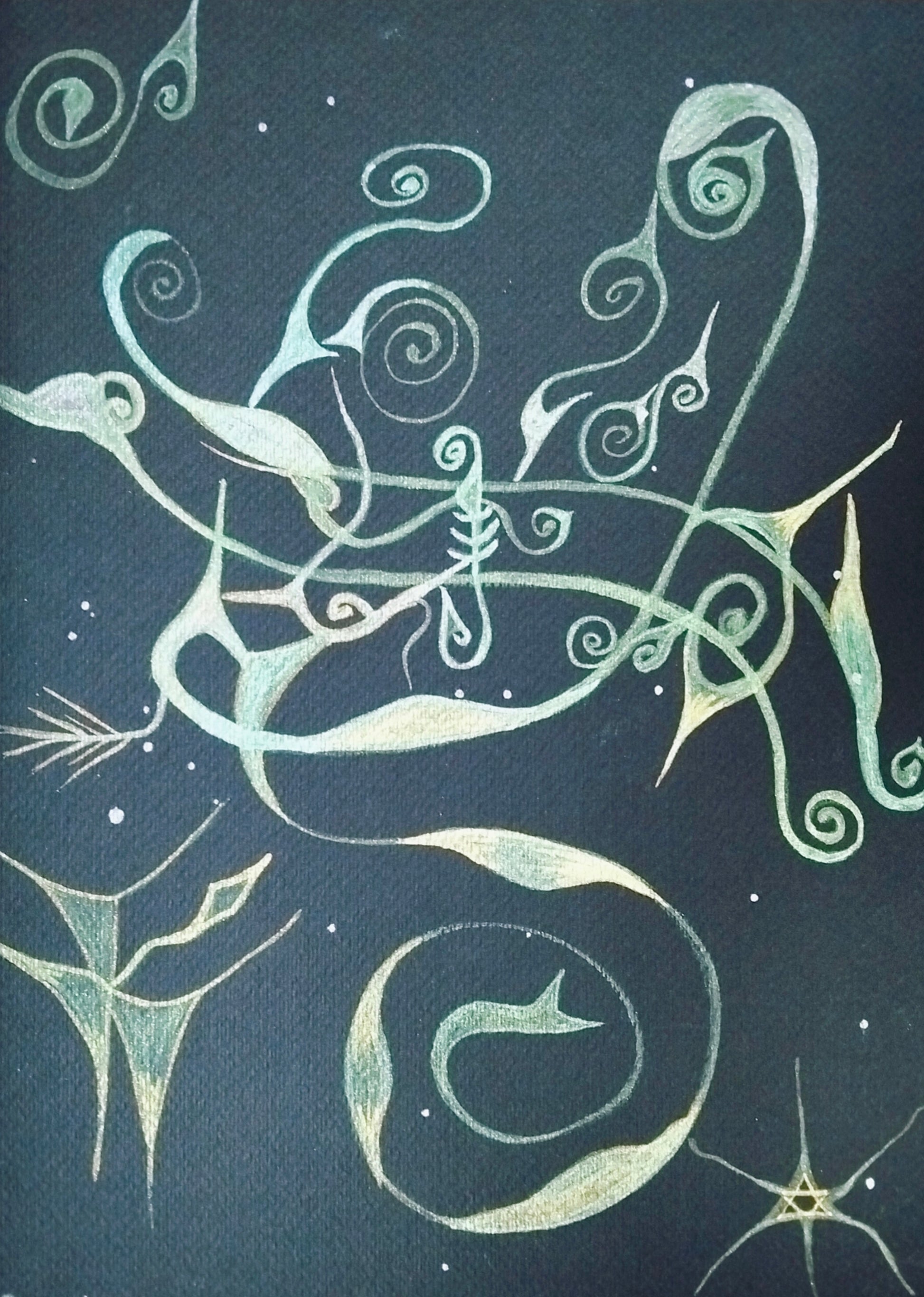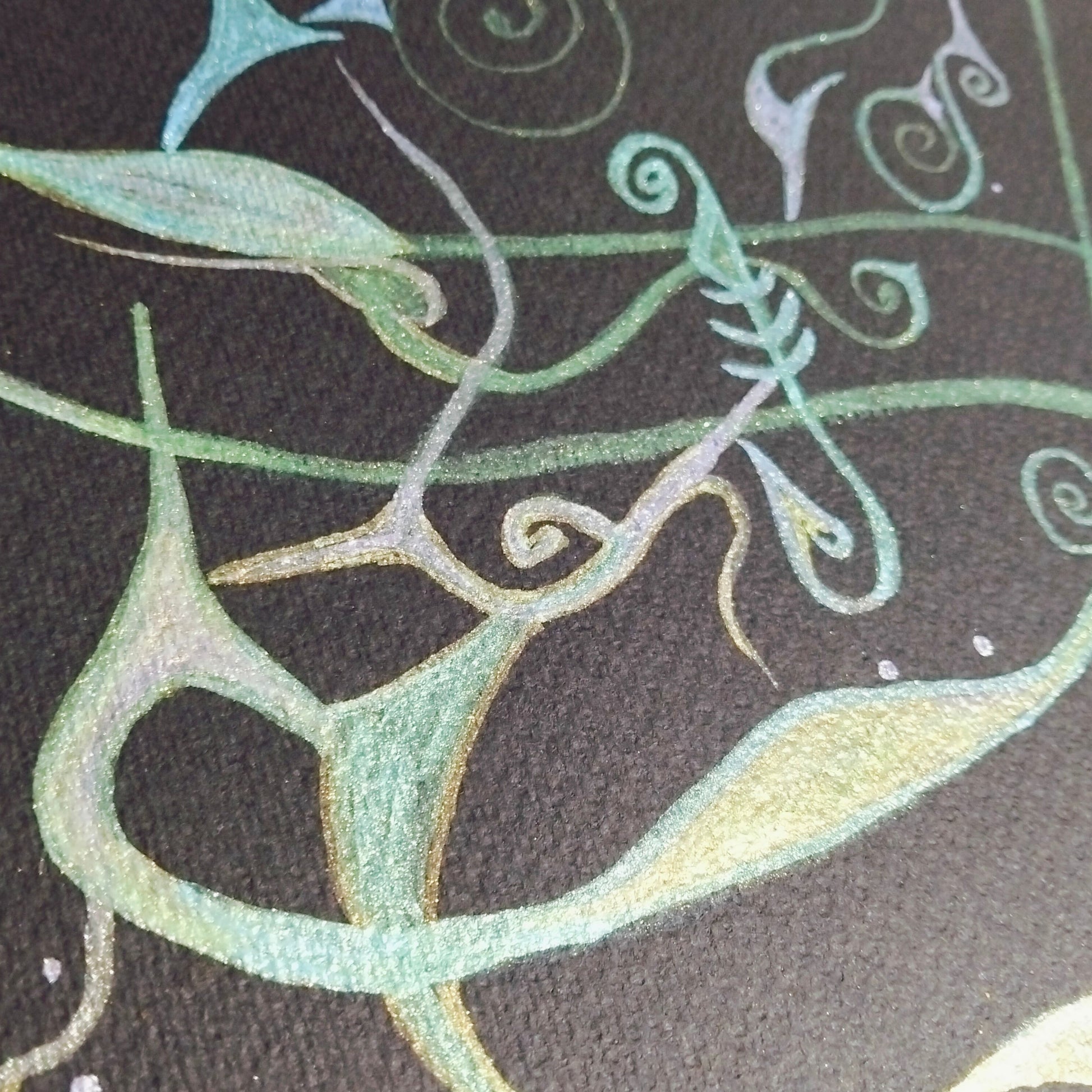 - Tecnica: colori ad acqua glitterati su cartoncino ruvido